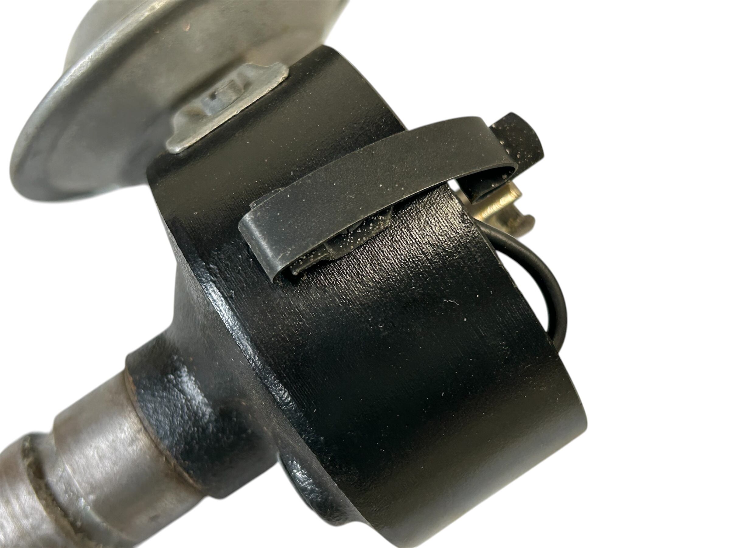 ボッシュ ZV/PAU4R2 ディストリビューターです。製造年月は1961年2月でリビルト&レストア済み、デストリビューター内部は分解チェックされドライブラストとウエットブラストで処理後に超音波洗浄機にてクリーニング、Zinkメッキを施されたのちメインシャフトをマイクロポリッシュし消耗部品の交換が施されています。本体にはガソリンなどの耐薬品性と高放熱性に優れた表面硬度9Hの硬質コーティングが施されており、コートの厚さは平均25μ(0.025mm)と薄く、鉄製デストリビューター本体の美しいへアラインが際立っています。
